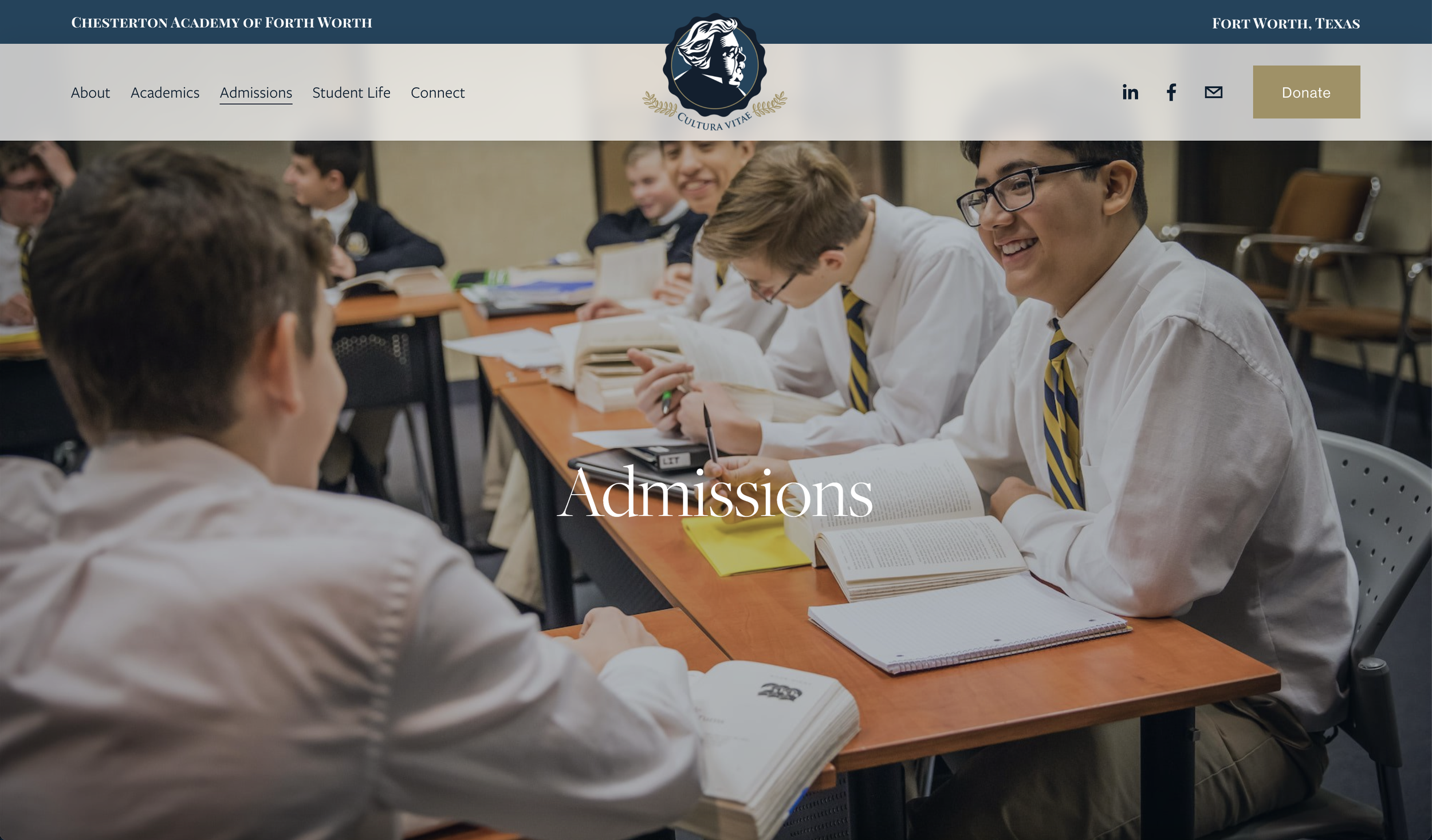 Squarespace site matching design of chestertonacademy.org including Homepage, About, Academics, News (importing your current blog), Donate, Contact, Events Calendar, Admissions, Student Life, Careers, Board of Directors, Faculty Directory, and basic SEO optimization, and commerce features to sell tickets or other non-physical products.